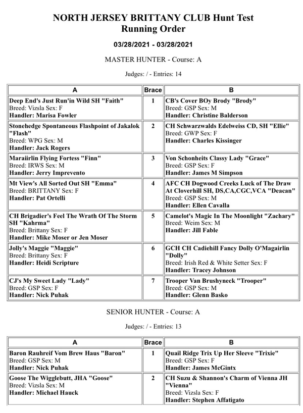 North Jersey Brittany & Vizsla Club Of Northern NJ Hunting Test March 23-24, 2019, 1 weekend, 2 clubs, 4 test. 070JacquieDec 02, 2018